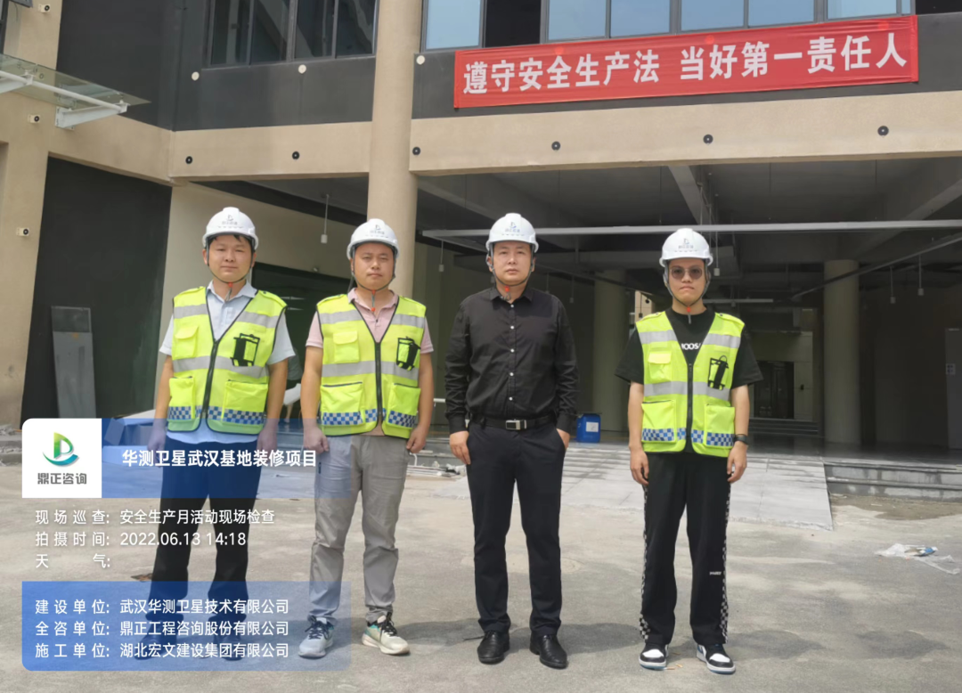 6月13日,鼎正咨詢副總經理張虎、項目管理部經理張力來到華測武漢基地項目現場,開展2022年“安全生產月”活動巡查,貫徹落實“抓安全管理就要抓隱患排查”思想,對華測項目在施工期間所開展的項目安全進行檢查。張總表示:“針對現場發現的安全隱患,除了通過發送安全檢查報告、監理通知單方式形成書面記錄以外,還要安排專人督促整改落實情況,做到安全隱患零容忍。”他強調杜絕僥幸心理,安全生產必須警鐘長鳴,要遵循安全生產科學規律,及時整治潛在隱患,筑牢安全生產防線。
