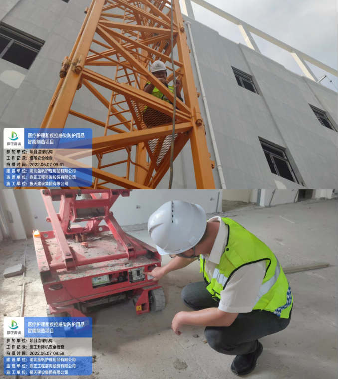 6月7日,醫療護理和疾控感染防護用品智能制造項目總監理工程師陳雄對施工現場進行塔吊、物料提升機、施工升降機、吊籃、臨時用電進行聯合檢查,現場抽檢施工單位的安全生產規范。此次檢查以安全生產細化管理為要求,以查隱患、找短板、促整改、防事故為目的。安全是確保工程質量的前提條件,質量是建設單位所追求的最終目標,安全則是實現這一目標的基本環境條件,安全監理是這一環境條件的保護神。